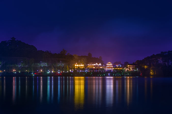 燈光秀目前已然成為了各大古建經(jīng)典、園林景觀或市政亮化項(xiàng)目上常見的一種燈光亮化形式,在四川古城閬中就進(jìn)行了大型燈光秀照明亮化,其表現(xiàn)為隨著夜幕降臨后象征祥瑞之氣的燈光從錦屏山、白塔山觀景臺(tái)射向古城之穴中天樓,中天樓演繹出金木水火土五行變換,中天樓直射出一束亮光,然后射向西山白虎位,白虎之象躍然于眼前,再射向朱雀、青龍、玄武,瞬間“四象”以恢宏之勢(shì)顯示于閬苑群山之中,印證閬山的完美格局。