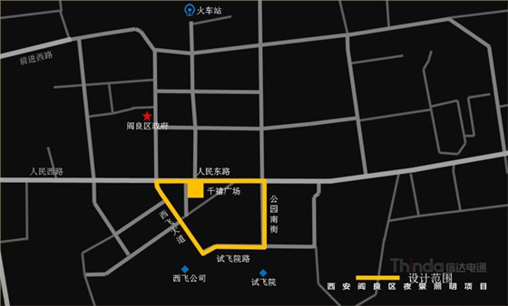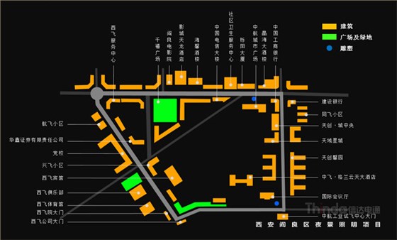 閻良區(qū)位于西安東北部,不但是一座底蘊(yùn)深厚的歷史古城,還是一座資源豐富的航空名城,區(qū)內(nèi)有中航工業(yè)試飛中心、第一飛機(jī)設(shè)計(jì)研究院、西飛公司、中國(guó)飛機(jī)強(qiáng)度研究所等大型航空企事業(yè)單位,聚集了1/3以上的航空資源。閻良已成為中國(guó)唯一、亞洲最大的六位一體的航空工業(yè)基地,被譽(yù)為“中國(guó)航空城”。本案亮化設(shè)計(jì)范圍為閻良區(qū)人民東路、西飛大道、試飛院路、公園南街等四條道路兩側(cè)的30余棟建筑及廣場(chǎng)、景觀帶。