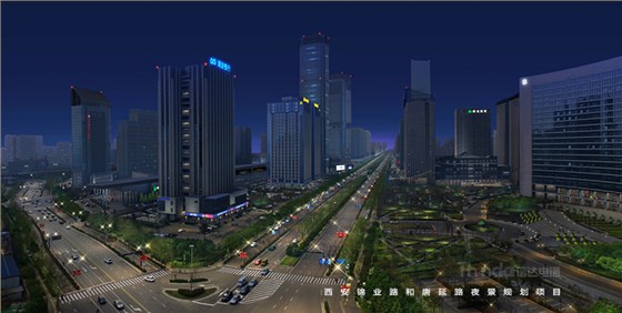 本項(xiàng)為西安高新區(qū)建筑景觀照明規(guī)劃設(shè)計(jì)中的一部分,地處于唐延路南與錦業(yè)路東交叉口,該視角可見建筑有都市之門、浦發(fā)銀行、綠地智海大廈、綠地筆克國際會(huì)展中心、陜西煤業(yè)化工集團(tuán)、領(lǐng)海大廈、中鐵航空港假日酒店等,是高新區(qū)錦業(yè)路南端的重要位置,當(dāng)車輛、行人抵達(dá)該位置時(shí),視角寬闊夜晚可視范圍大,夜幕下的燈光也就更為重要。