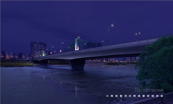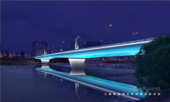 小西湖黃河大橋位于蘭州市七里河區濱河路黃河風情線中段,夜景提升前,大橋燈具脫落、管線外露,影響大橋形象。照明設計中,信達采用藍、白等至純純之色,體現橋體的晶瑩剔透,純凈如水,晶瑩如露。