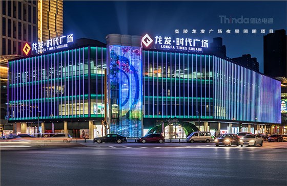 信達(dá)電通以“光韻盛世 影現(xiàn)時代”為主題,為龍發(fā)時代廣場量身規(guī)劃夜景,打造一場商業(yè)與藝術(shù)的燈光盛宴。