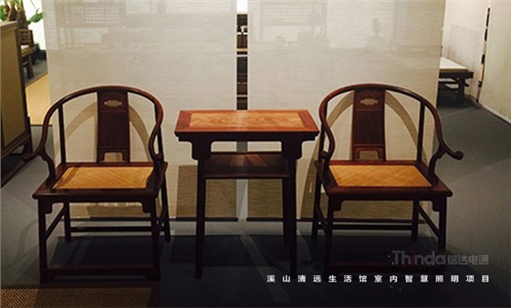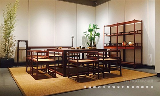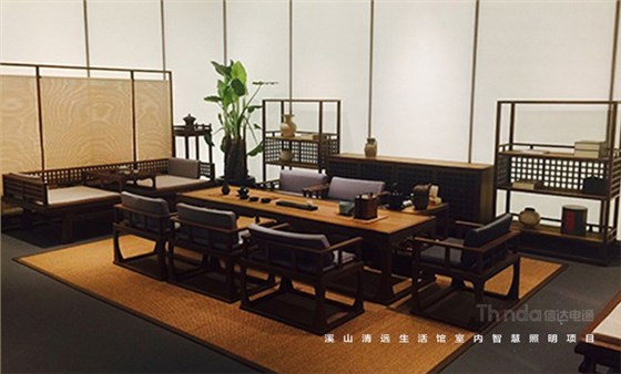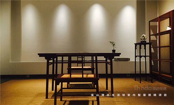 溪山清遠生活館是其公司在北京朝陽區設立的明式、宋代家具主題生活館。溪山清遠探究家具,是探究一種回歸。俗韻已行,塵網誤落,陶淵明欣慨之意,宜適今日??醇娂姅_擾,無休無歇,勞心廢形,永無止息。溪山清遠就是在居住意境上去建設一條回歸的曲徑,精簡,守靜,歸真。信達科技是溪山清遠生活館室內空間照明的設計及施工、控制系統一體化服務單位。