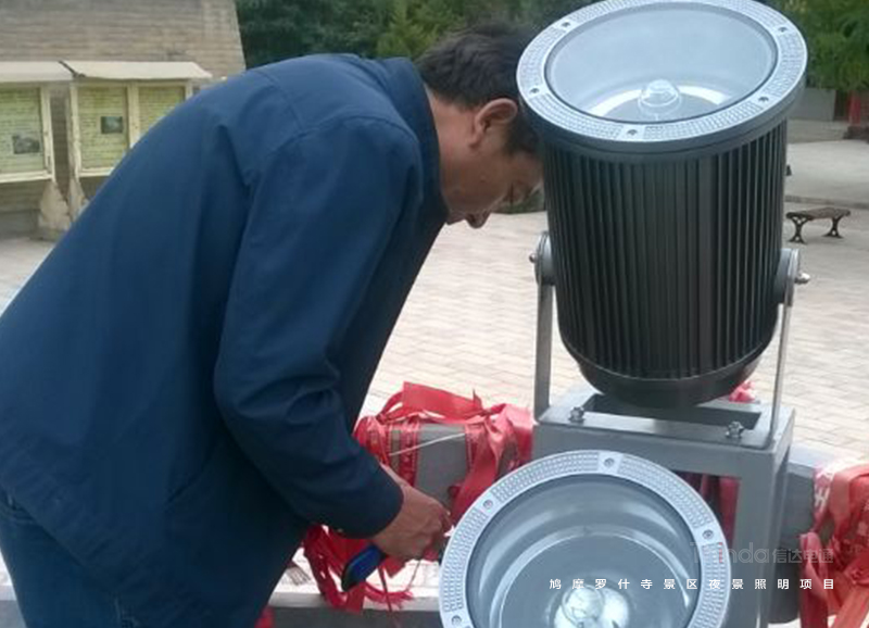 照明施工人員對燈具進(jìn)行保護(hù)處理。