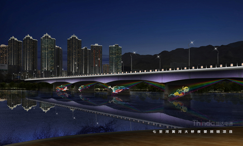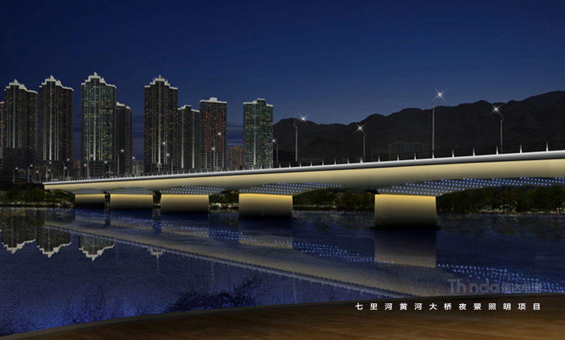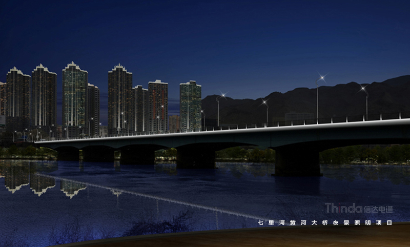 七里河黃河大橋建于1977年,是當(dāng)時(shí)國(guó)內(nèi)新建的黃河上最大跨度的鋼筋混凝土懸臂梁橋。信達(dá)對(duì)其夜景提升提供全過(guò)程服務(wù)。在照明設(shè)計(jì)中,強(qiáng)調(diào)扶手、欄板、橋墩結(jié)構(gòu),功能性與裝飾性照明兼具,能夠突出橋體的端莊與大氣。在工程施工期間,信達(dá)電通全程把控效果展現(xiàn),并提供后期技術(shù)咨詢維護(hù)服務(wù)。
