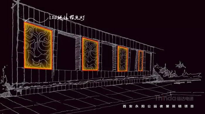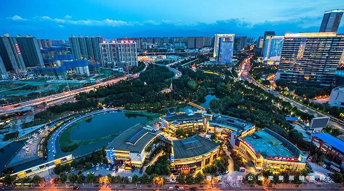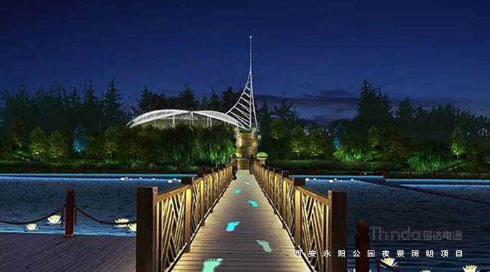 永陽(yáng)公園是西安一個(gè)別開生面的科技公園,因地處唐代長(zhǎng)安永陽(yáng)坊而得名,位于西安市丈八東路和西灃公路十字路口,是由西安高新技術(shù)產(chǎn)業(yè)開發(fā)區(qū)興建,占地10萬(wàn)平方米,2006年對(duì)外開放。繼2016年完成西安高新區(qū)夜景亮化設(shè)計(jì)之后,信達(dá)電通對(duì)永陽(yáng)公園進(jìn)行夜景照明規(guī)劃設(shè)計(jì)。