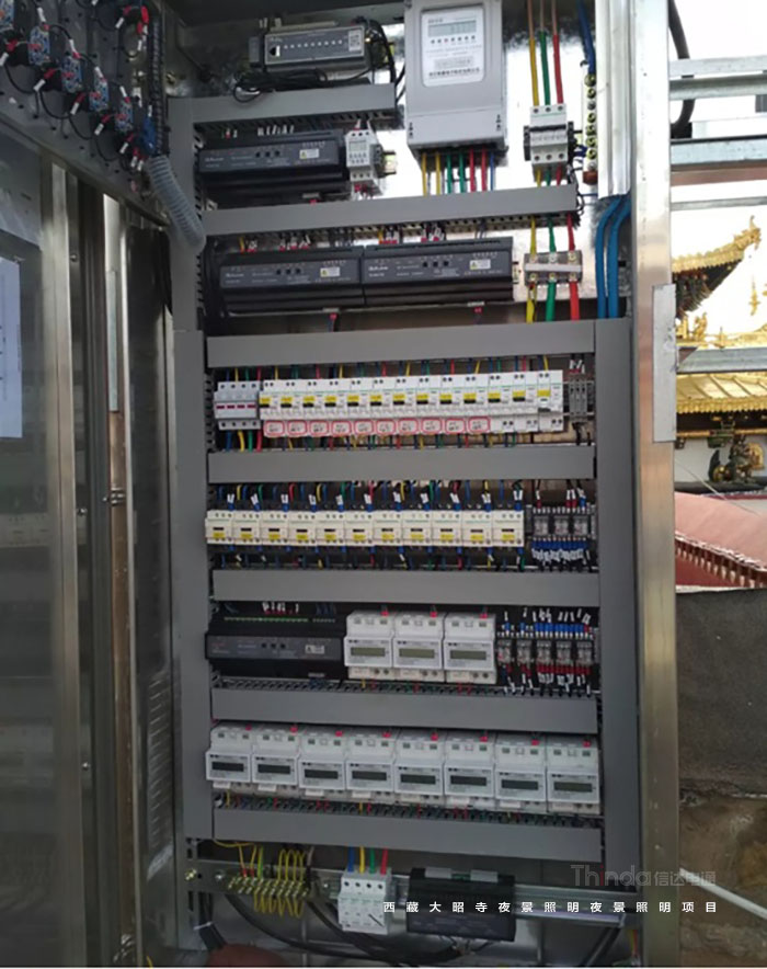 大昭寺的整體照明控制采用信達(dá)科技自主研發(fā)的鼎立慧聯(lián)智能控制系統(tǒng)。控制系統(tǒng)采用手動、時間經(jīng)緯度、4G智能照明等控制方式,控制模式分為節(jié)能、平日、節(jié)日三種模式,總控制室設(shè)定在管委會樓頂景觀照明控制室。大昭寺四周所有投光燈具使用DALI調(diào)光控制系統(tǒng),主控設(shè)備具有RS485擴(kuò)展接口,同時系統(tǒng)可通過電腦圖形化界面對所有的燈光進(jìn)行集中控制監(jiān)視。