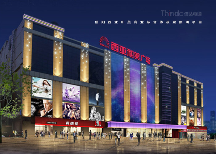 西亞和美商業(yè)廣場地處于河南省信陽市,位于東方紅大道、南臨北京南路、東臨統(tǒng)一街,周邊有鳳凰新世界、東方京城、軸線之廊,位置優(yōu)越,交通便利。這里信陽人民平時(shí)生活娛樂與購物餐飲的地方,也是IGA中國區(qū)優(yōu)秀零售商。目前商業(yè)廣場夜景照明已經(jīng)跟不上整體的商業(yè)需求,急需進(jìn)行照明設(shè)計(jì)施工改造升級,為此信陽西亞和美業(yè)主聯(lián)系到信達(dá)電通,雙方根據(jù)本案開展照明設(shè)計(jì)施工合作。