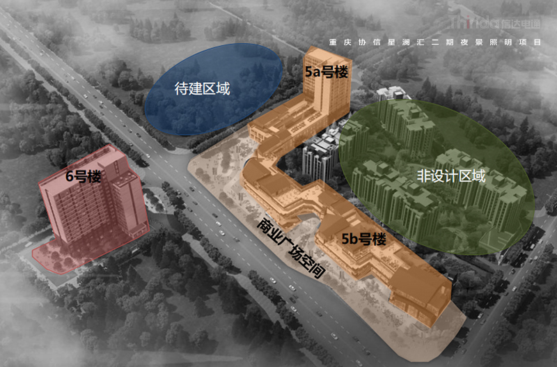 重慶商業綜合樓步行街夜景照明亮化設計項目位于重慶市巴南區左翼、濱江休閑帶、距離(渝中區)市中心10公里半徑范圍內,李家沱商圈、融匯半島頂部。